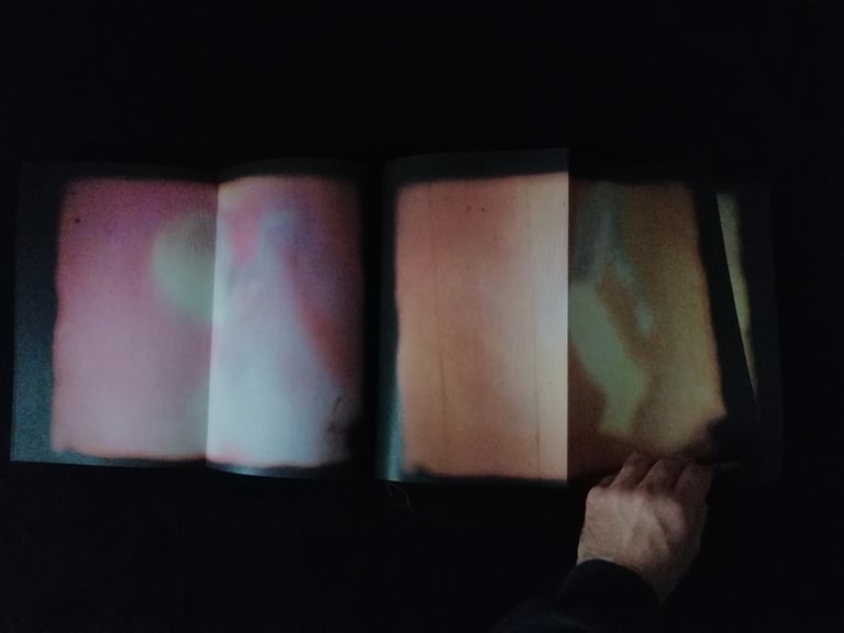 « THE BODY, PAINTING I SEEN THERE » mischievously replaces the retina with super 8mm film for an instant where it froze bodily representations in time. The information of skateboarders interacting with and within an otherwise live environment is now framed on medium that is uncertain after subsequent physical alterations, from repeated recapturing as well as gestation in negative form limbo coloring the images of their own historical hue, and now translated onto paper.