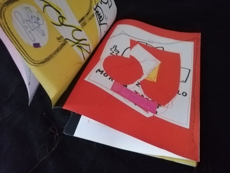 The drawings are playing with the fixed parts of the final compositions and the loose sewing thread which is a live and moving element, especially in the later process of scanning, printing and making of the publication.