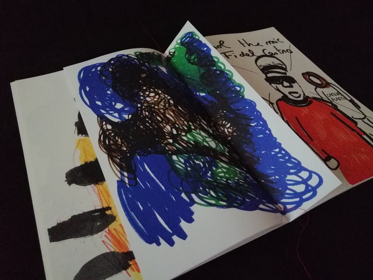 Montage de dessins et de peintures, noise music, recouvrements, vélo et eau. + un titre manuscrit